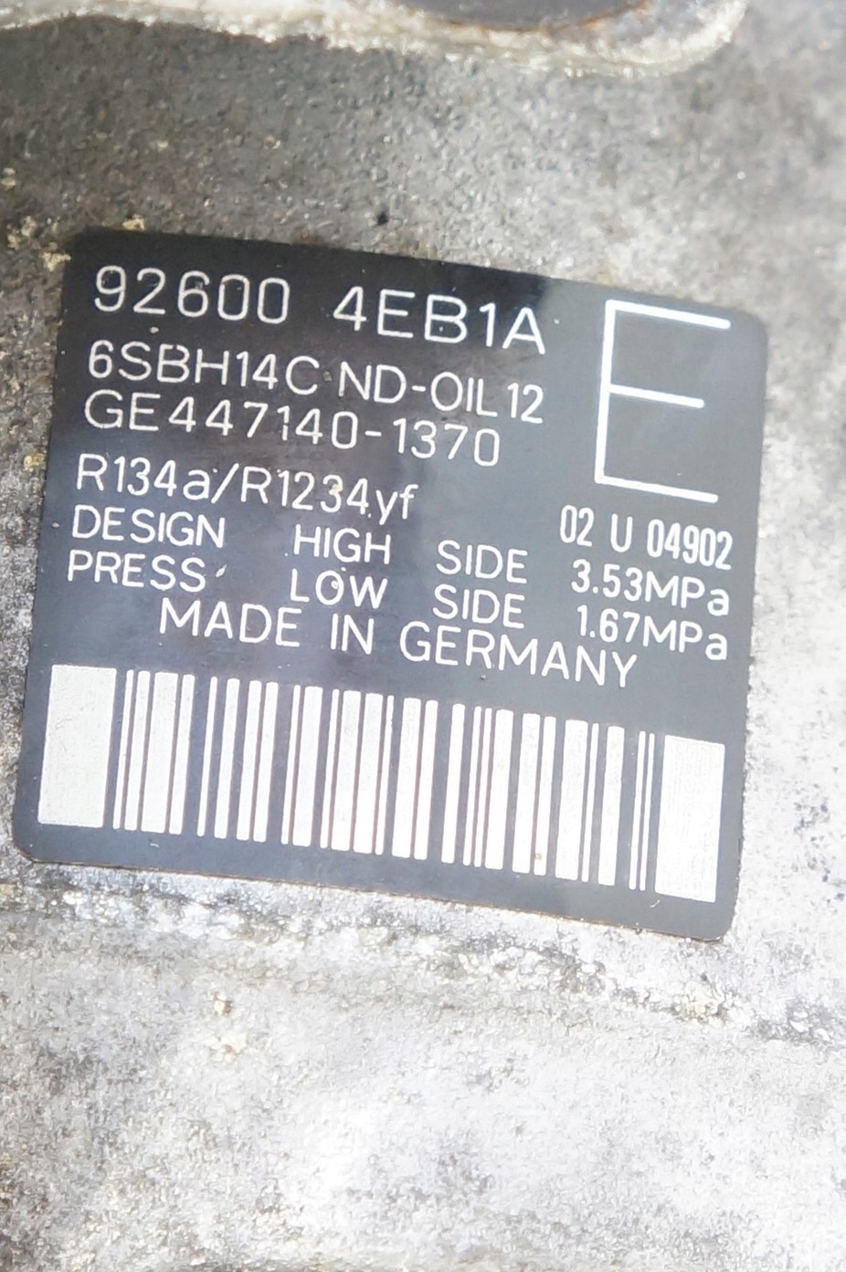 KOMPRESOR KLIMATYZACJI NISSAN QASHQAI 1.6 DIG-T 926004EB1A 447140-1370